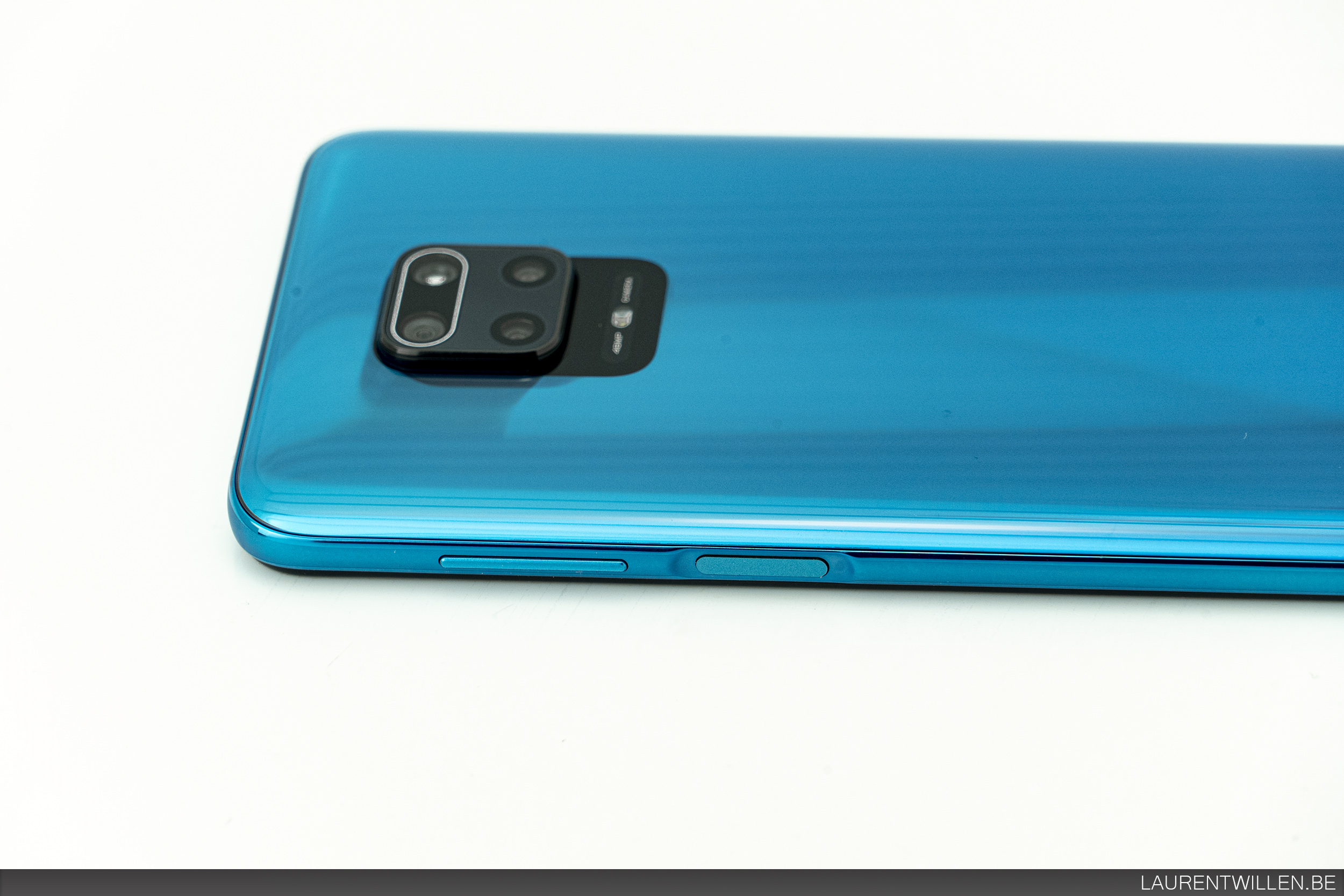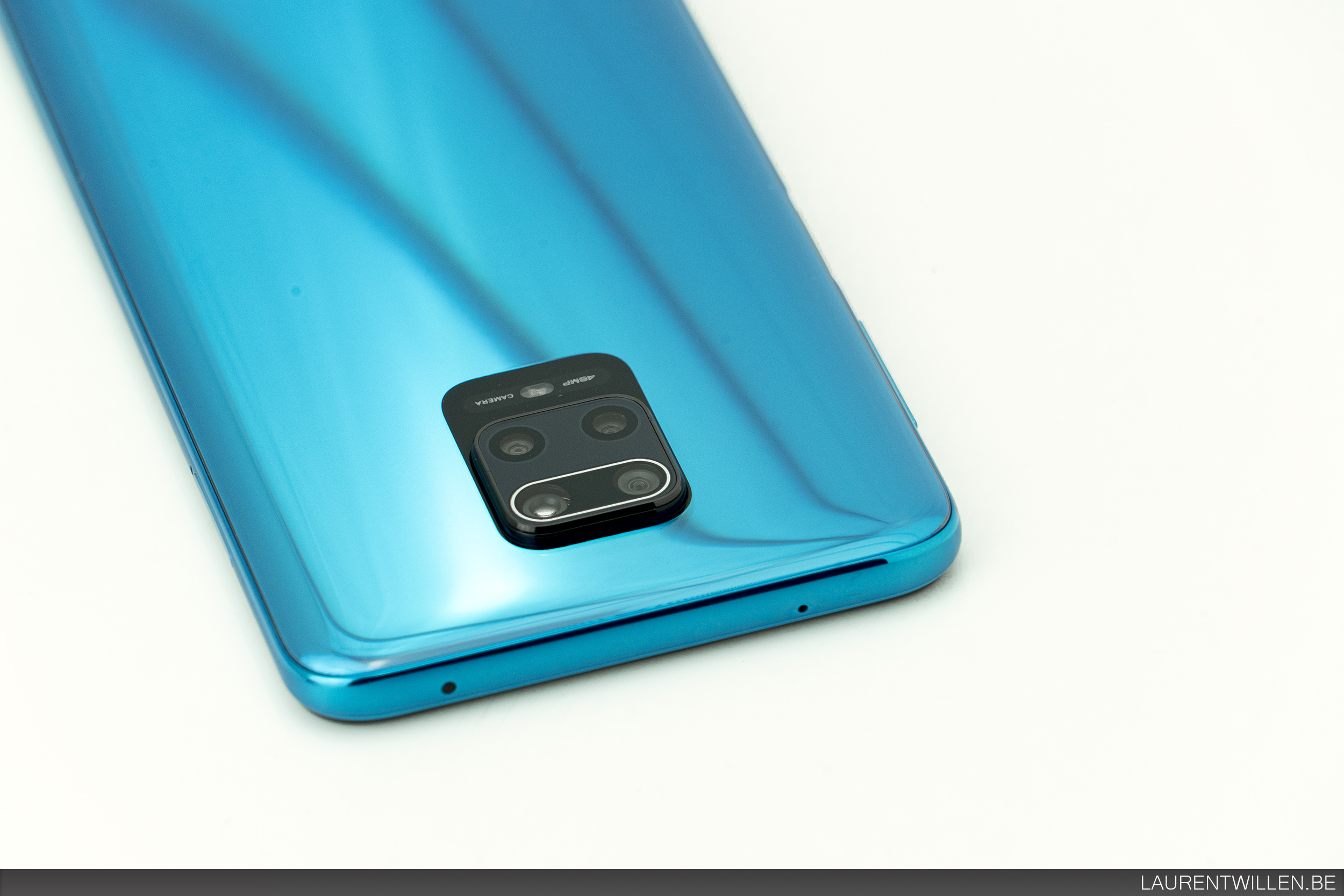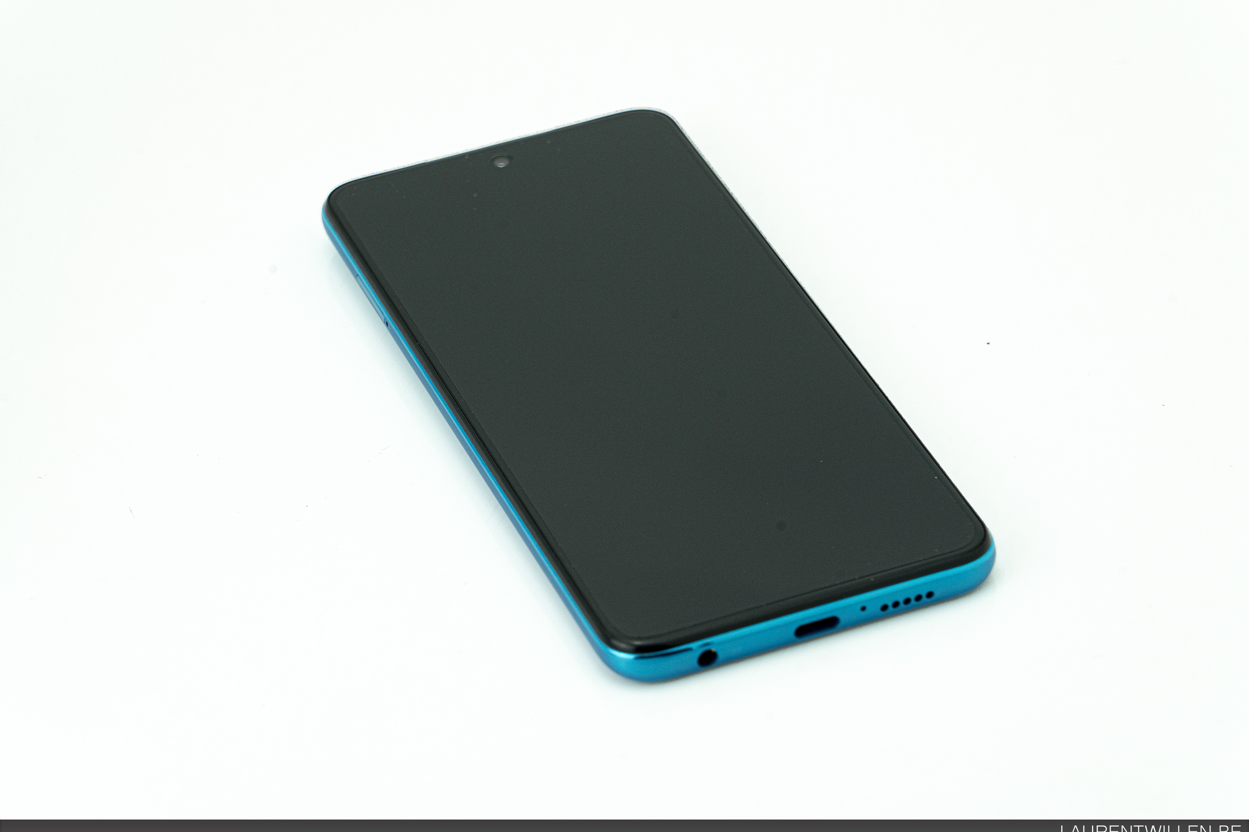 A chaque nouvelle génération, les smartphones Redmi montent d'une gamme en matière de finition. Le Redmi Note 8 était sobre et élégant mais ne se distinguait pas beaucoup des autres téléphones dans cette gamme de prix. Le Redmi Note 9s prend une autre direction avec un dos à l'aspect métallique ou le bleu se mélange au vert sur une surface assez réfléchissante. La photo vous donnera sans doute l'impression que le dos est en métal mais ce n'est pas le cas, il s'enfonce d'ailleurs légèrement lorsque l'on appuie dessus. Malgré ce choix pour le matériel, le téléphone fait bonne impression. C'est la première fois que je vois ce choix de couleur chez Xiaomi, le Xiaomi Mi 9 Lite utilise le même genre de matière mais la couleur utilisée était plus classique. La plupart des téléphones ont une taille et une forme similaire, seule la couleur permet de vraiment les différencier et ce nouveau Redmi y arriver très bien avec cet effet métallique.