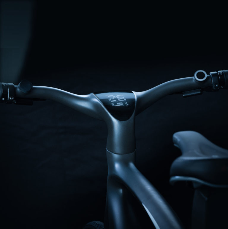 Il telaio è interamente costruito in fibra di carbonio, lo stesso per la forcella e il manubrio, non è la prima bici di questo tipo ma questo le permette di raggiungere un peso di soli 14 chili. L'uso del carbonio consente anche di progettare biciclette di formato leggermente diverso e questa ha chiaramente un design futuristico.