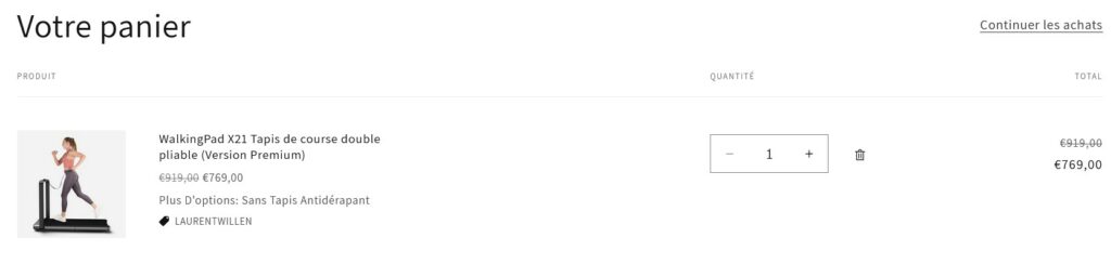 Il tapis roulant Kingsmith WalkingPad X21 è disponibile online su molti siti come Amazon o anche Decathlon ma ho un codice sconto esclusivo di 150€ se lo acquisti sul sito ufficiale. È esattamente lo stesso prodotto con solo un prezzo migliore.