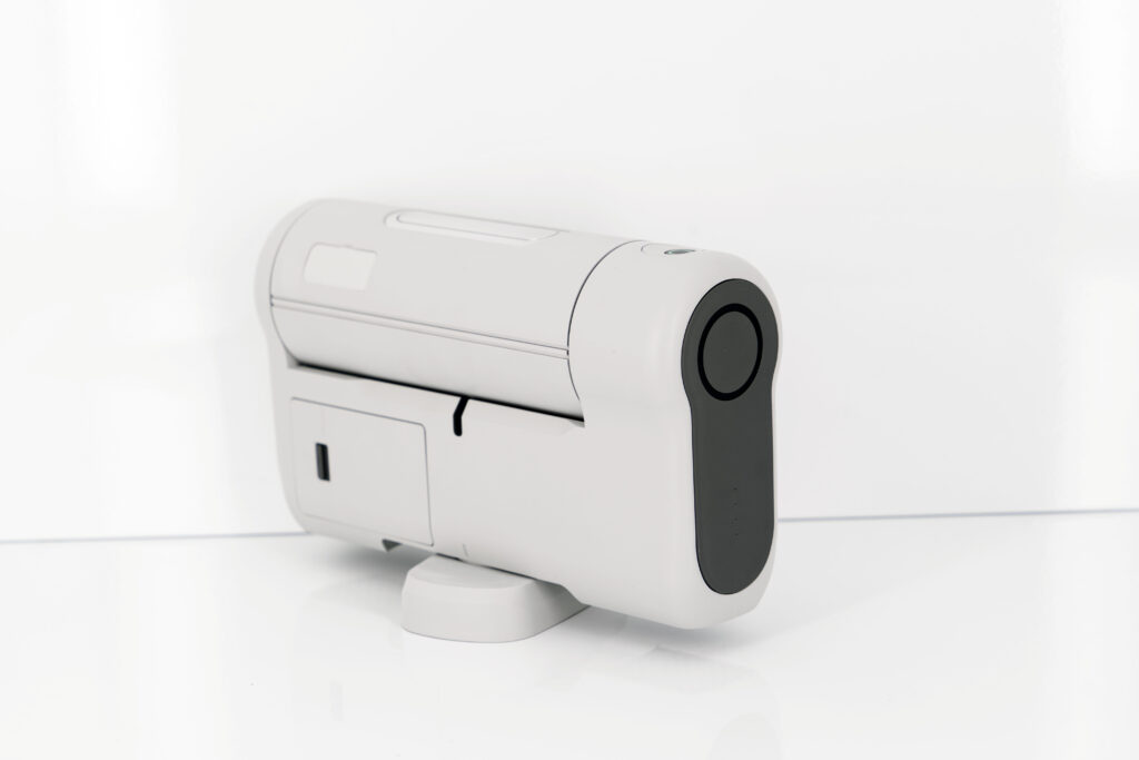 Dwarf III utilizza le stesse basi del Dwarf II (foto sopra) Il telescopio è compatto, si ripiega molto facilmente. trasportato in una piccola borsa da viaggio Non necessita di treppiede, è in grado di orientarsi sull'asse orizzontale con la sua base rotante e verticalmente con il suo asse ottico di rotazione.
